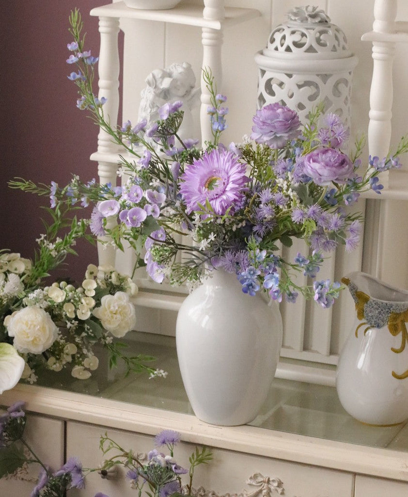 Artificial Floral for Living Room, Large Bunch of Purple Romantic Flowers for Bedroom, Beautiful Spring Flower Arrangement for Interior Design, Table Centerpiece