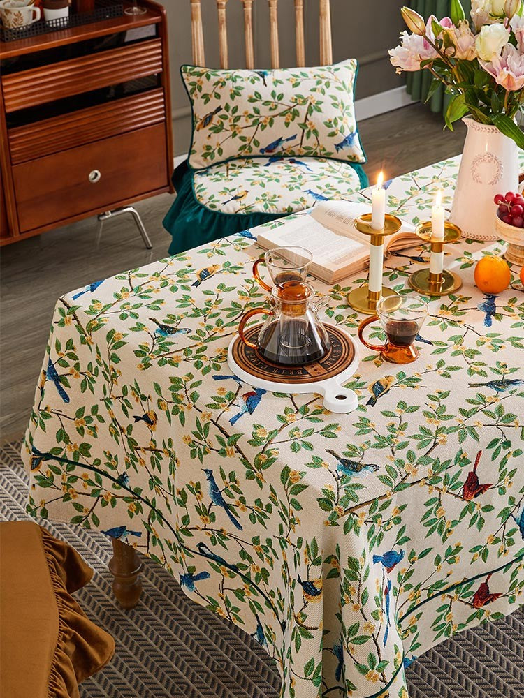 Large Modern Rectangle Tablecloth for Dining Room Table, Bird Flower Pattern Farmhouse Table Cloth, Square Tablecloth for Round Table