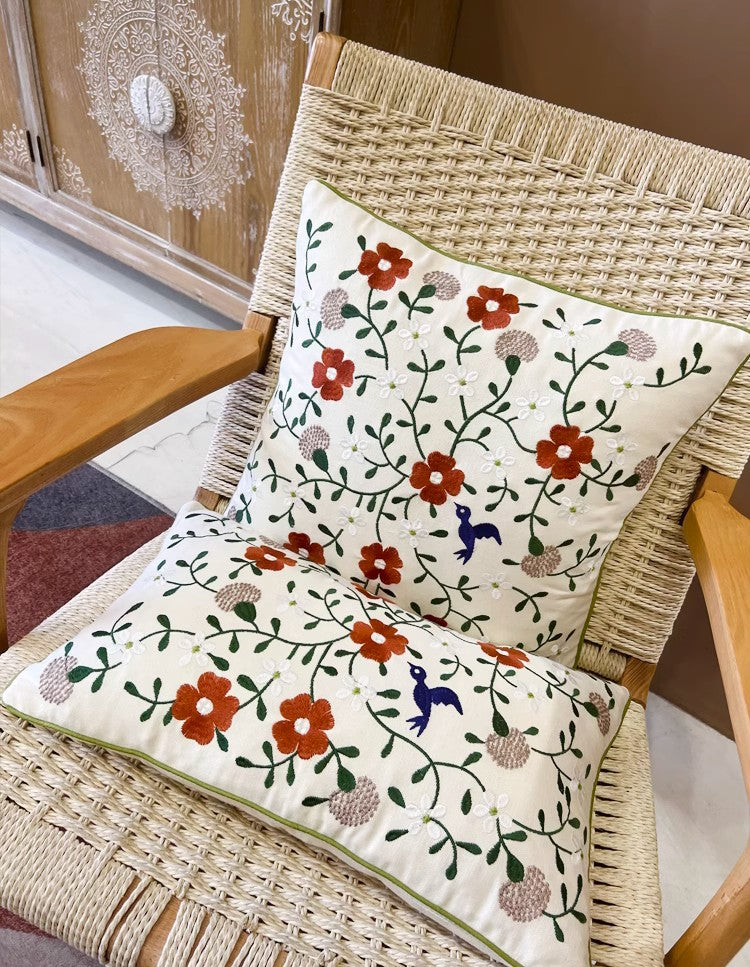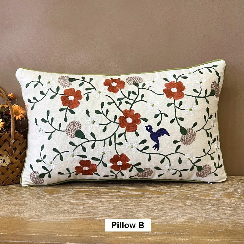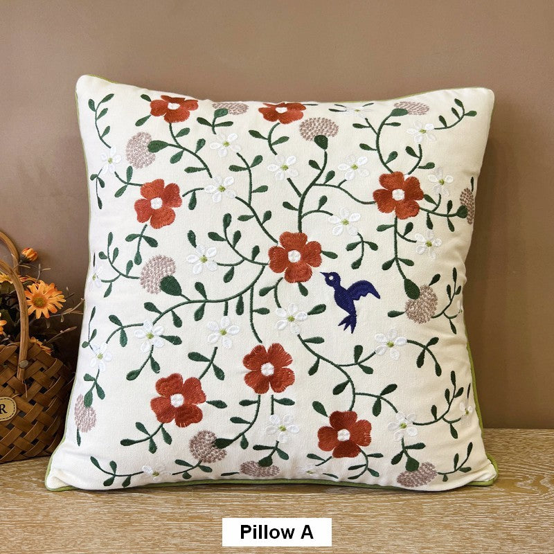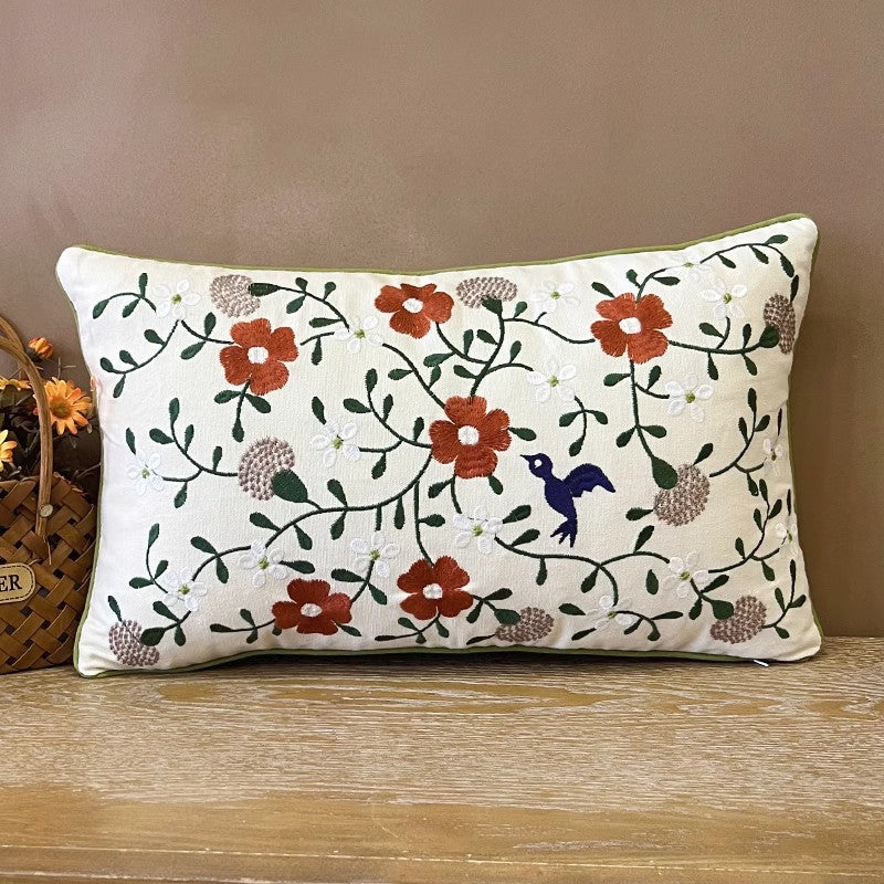 Bird Spring Flower Decorative Throw Pillows, Farmhouse Sofa Decorative Pillows, Embroider Flower Cotton Pillow Covers, Flower Decorative Throw Pillows for Couch