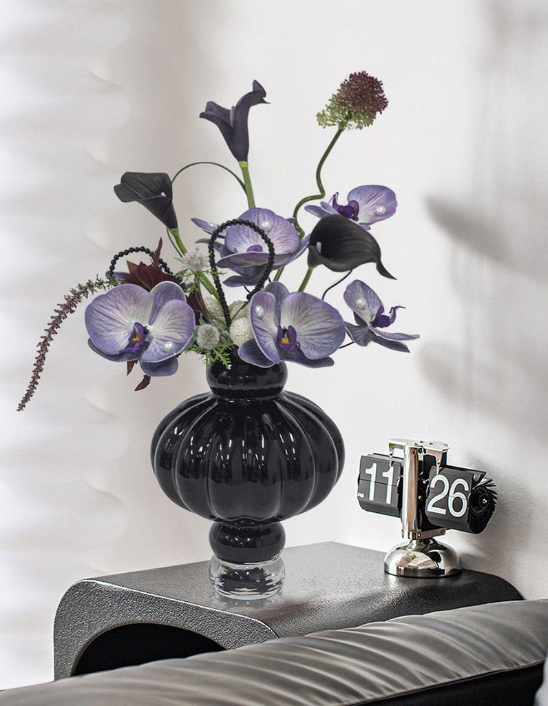 Black Glaze Vase, Contemporary Vases for Modern Home Decor, Black Glass Bud Vases, Handmade Liuli Vases, Centerpiece Vases on Table