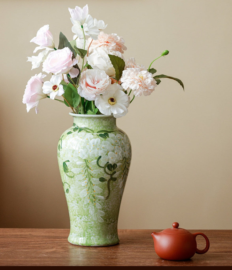 Centerpiece Ceramic Bud Vases, Large Flower Vases on Table, Green Porcelain Flower Vases, Handmade Water Holding Flower Vase