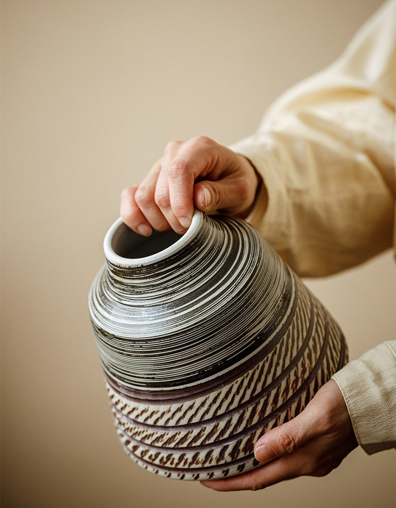 Centerpiece on Dining Table, Handmade Pottery Flower Vases Urn, Modern Bouquet Flower Vases, Water Holding Flower Vases, Large Flower Vase on Table