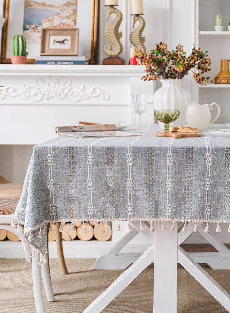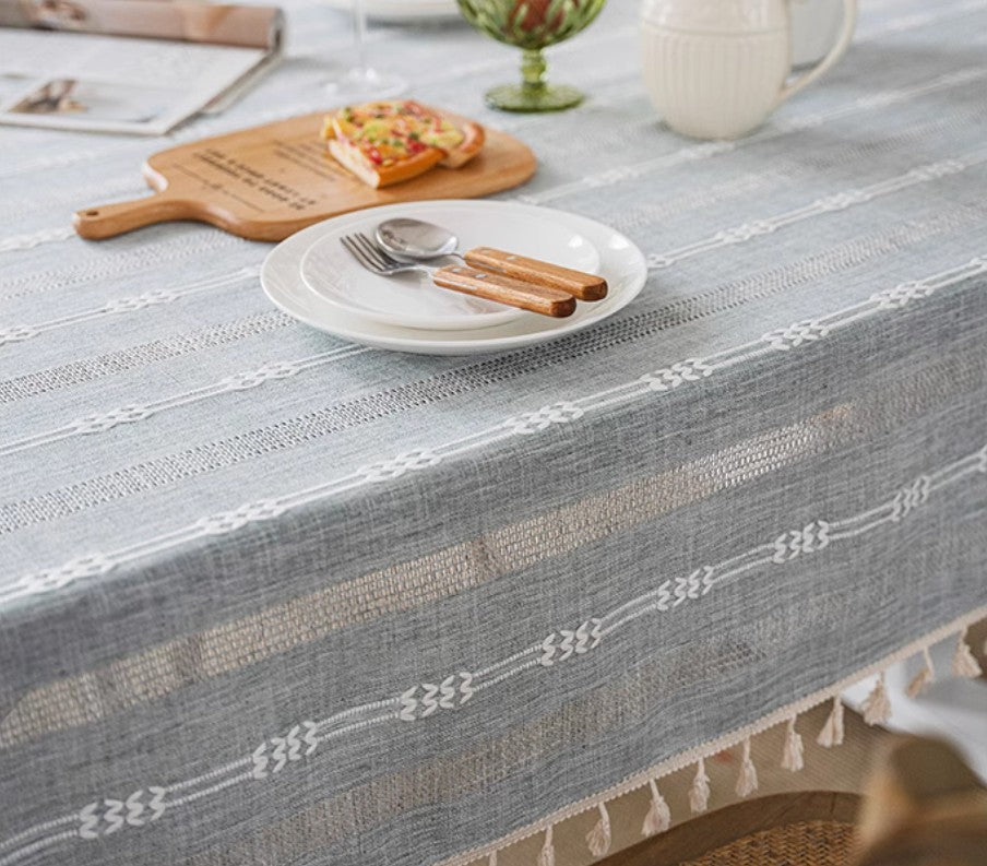 This unique natural flax table cloth is suitable for dining table, tea table, piano cover, bedstand, etc.