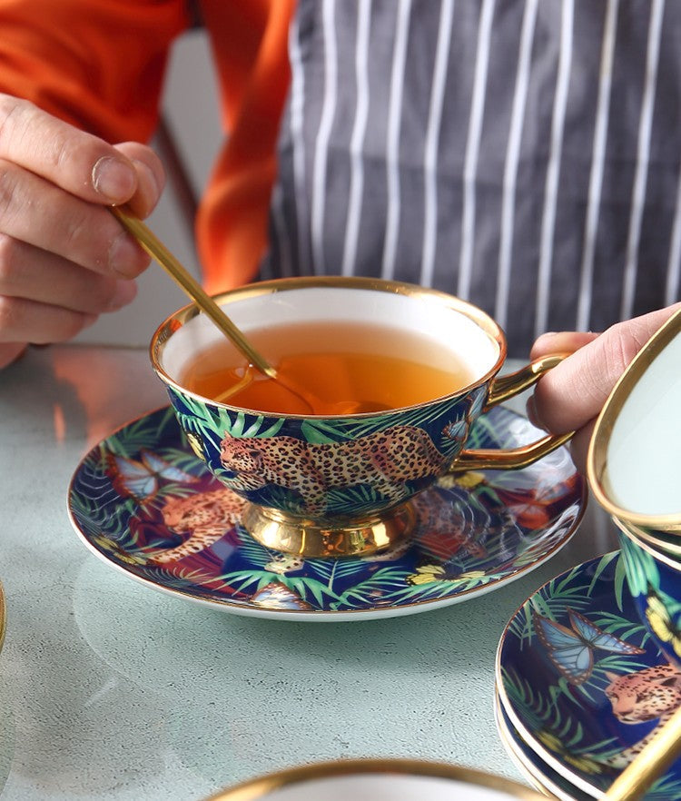 Creative Leopard Ceramic Coffee Cups, Unique Tea Cups and Saucers in Gift Box as Birthday Gift, Beautiful British Tea Cups, Creative Bone China Porcelain Tea Cup Set