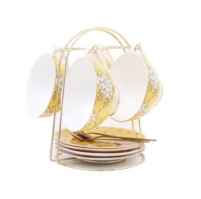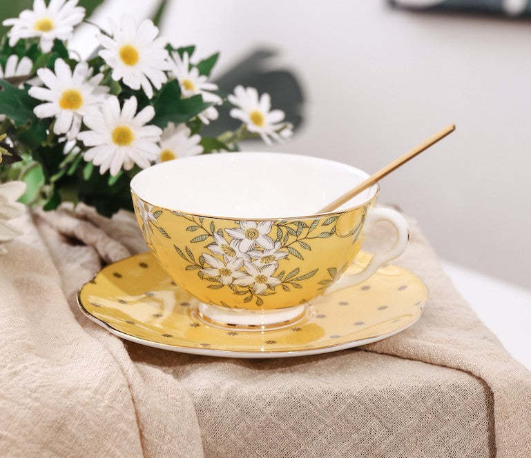 Creative Yellow Ceramic Coffee Cups, Unique Flower Coffee Cups and Saucers, Beautiful British Tea Cups, Creative Bone China Porcelain Tea Cup Set