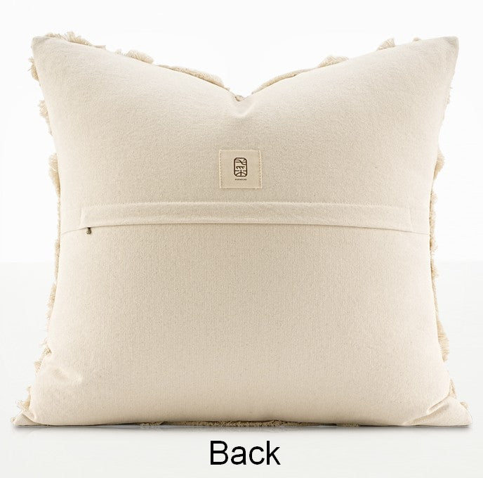 All pillow covers are sewn professionally, over-locked with finished edges to prevent fraying and has invisible zipper enclosures. This provides long lasting, durable covers that will stay straight and beautiful over time, which makes for a clean professional look.
