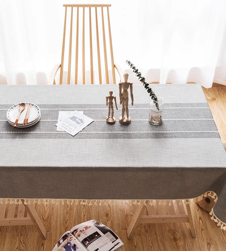 This unique natural flax table cloth is suitable for dining table, tea table, piano cover, bedstand, etc.