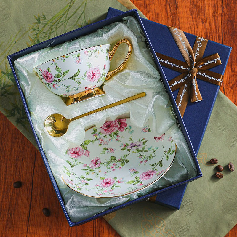 Elegant British Ceramic Coffee Cup with Saucer, Floral British Tea Cup and Saucer in Gift Box, Porcelain Tea Cup and Saucer Set