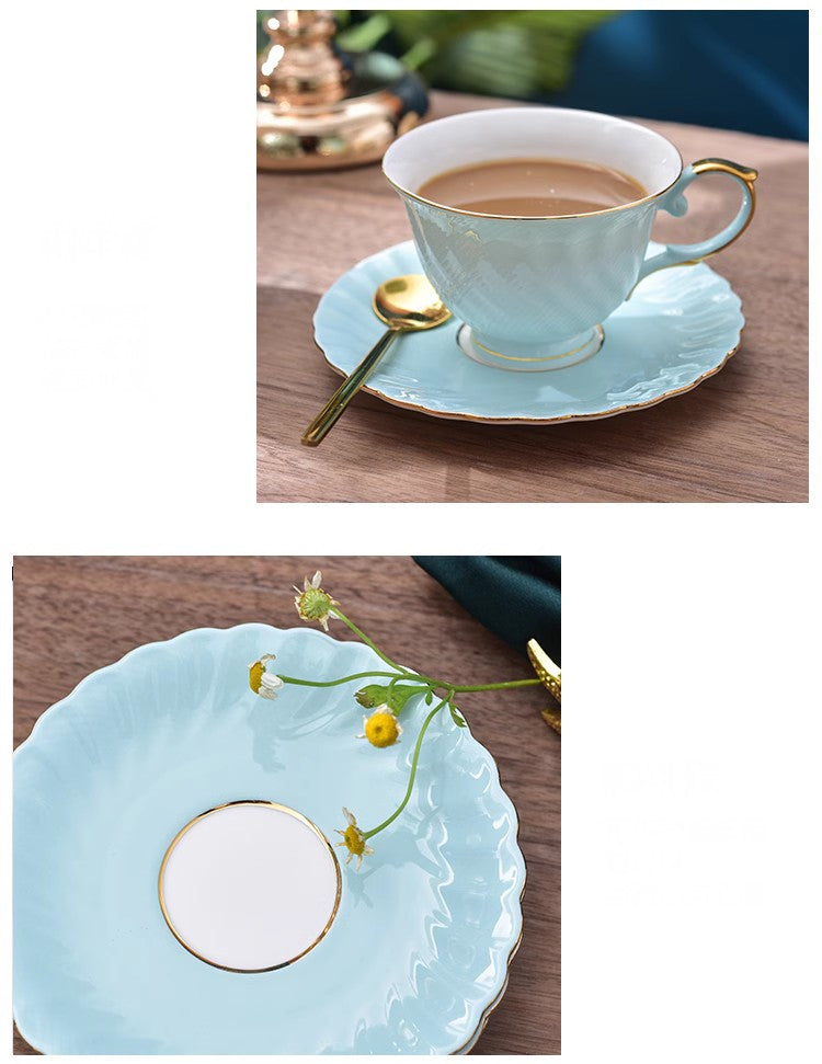 Elegant British Tea Cup and Saucer in Gift Box, Blue Bone China Porcelain Tea Cup Set, Unique British Ceramic Coffee Cups for Afternoon Tea