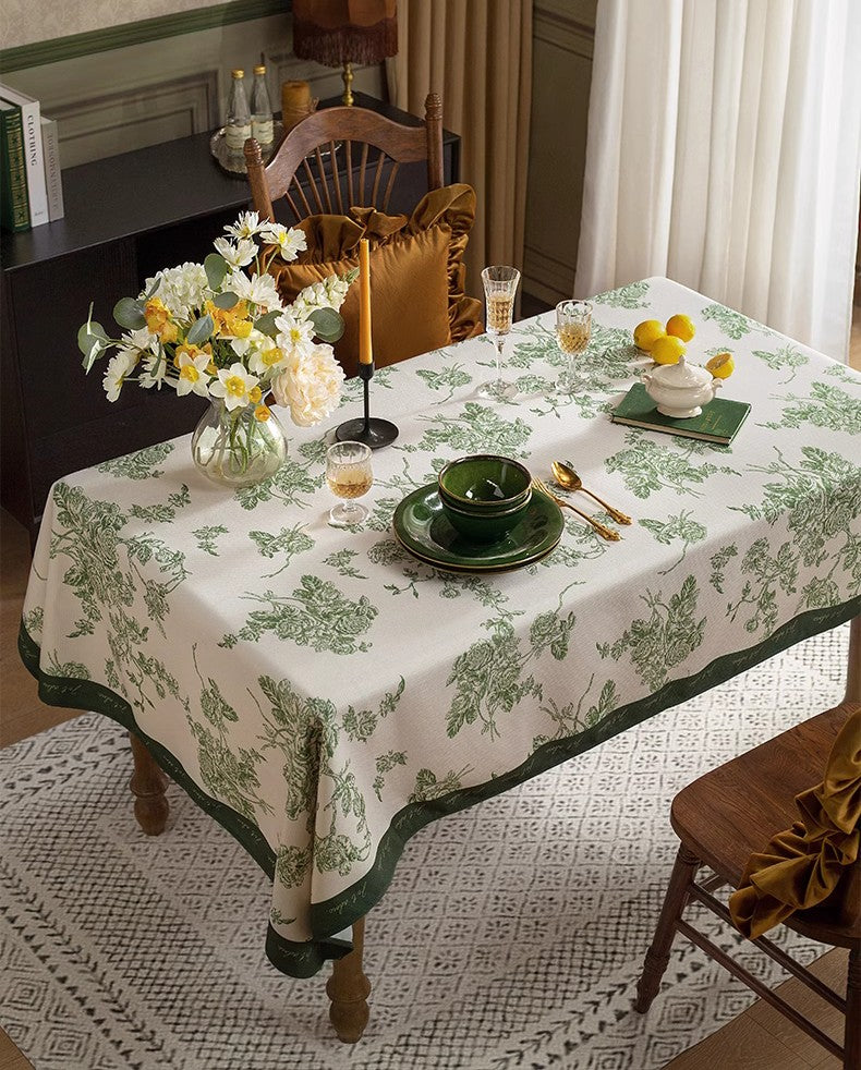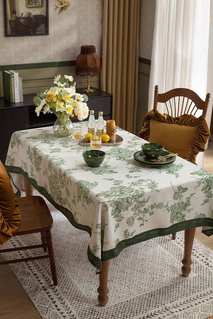 Chenille Flower Tablecloth for Dining Table, Elegant French Style Table Cover for Dining Room Table, Modern Rectangle Tablecloth for Oval Table