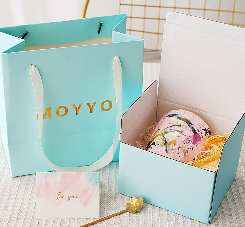 Elegant Pink Ceramic Coffee Mug, Beautiful Bird Flower Ceramic Mug, Large Creative Bone China Porcelain Mug, Large Capacity Ceramic Mugs for Office