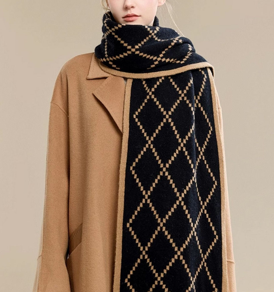 Elegant Wool Scarves, Black Brown Warm Winter Scarf, Winter Wool Scarf, Soft Cashmere Scarf for Women, Cold Weather Scarf, Fashion Scarf, Christmas Gifts for Her, Holiday Scarf