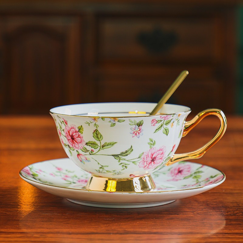 Floral Porcelain Tea Cup and Saucer Set, Ceramic Coffee Cup with Saucer, Traditional English Tea Cup and Saucer Set, Afternoon British Tea Cup with Saucer