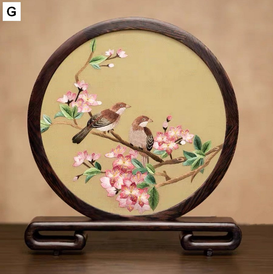 Flower and Bird Embroidered Decor, Unique Birthday Gift, Exclusive Business Present, Traditional Chinese Suzhou Embroidery Ornament, Premium Souvenir