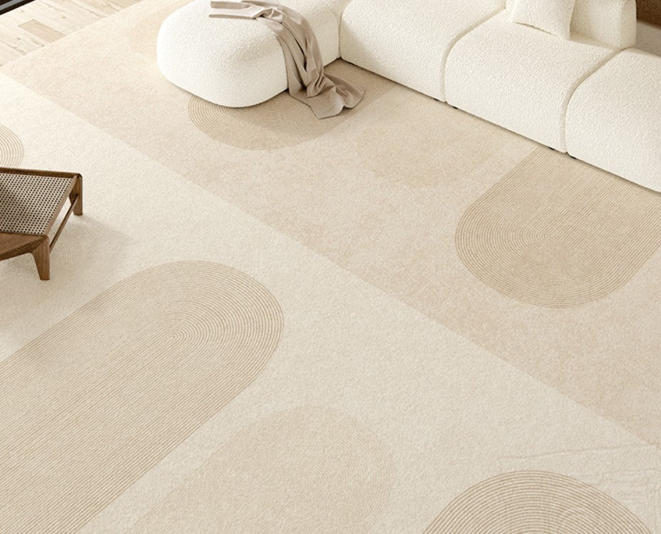 Cream Color Contemporary Modern Rugs for Office, Large Modern Rugs for Living Room, Dining Room Geometric Modern Rugs, Bedroom Modern Rugs