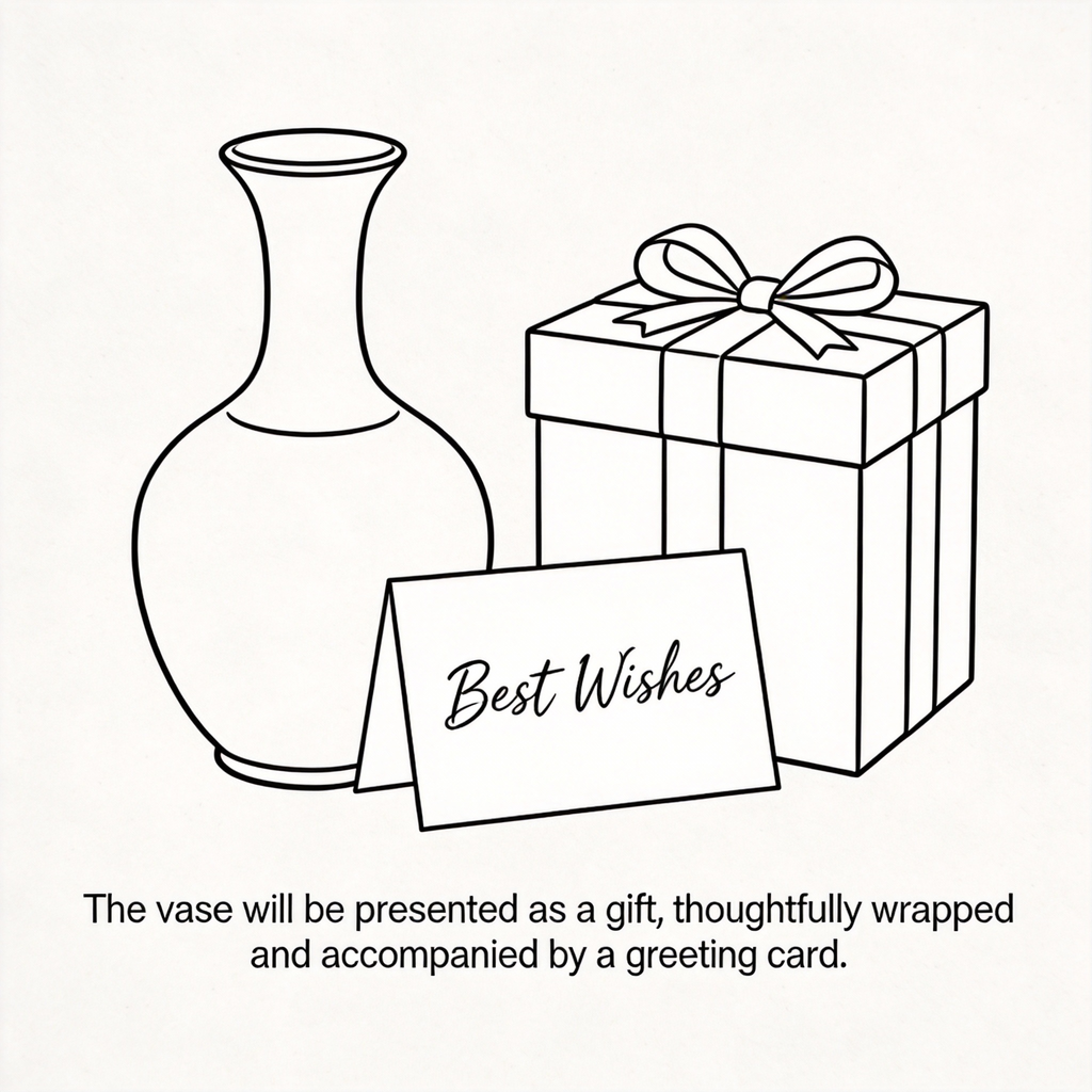 This vase also makes a heartfelt gift for your loved ones. We will gladly wrap it for you at no cost and include a handwritten card with your personal message. Simply share your wishes with us, and we will ensure they are beautifully conveyed.