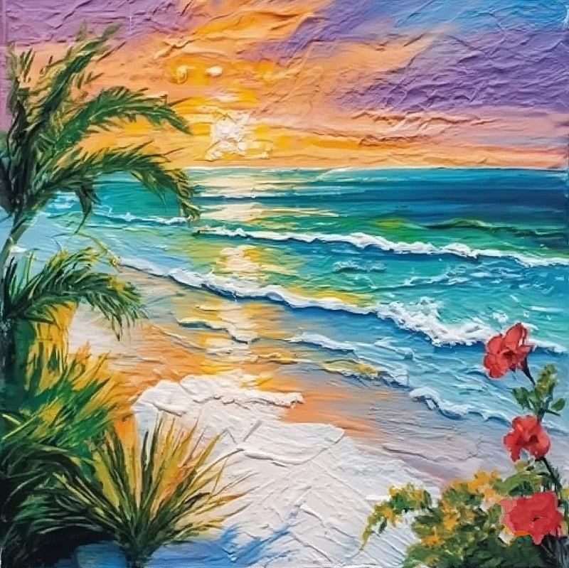 Heavy Texture Canvas Art, Small Palette Knife Paintings, Small Landscape Painting, Florida Seashore Beach Flower Painting, Easy Landscape Painting Ideas, Simple Small Canvas Paintings
