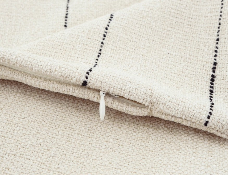 All pillow covers are sewn professionally, over-locked with finished edges to prevent fraying and has invisible zipper enclosures. This provides long lasting, durable covers that will stay straight and beautiful over time, which makes for a clean professional look.