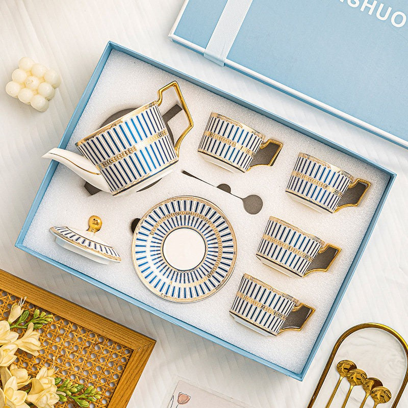 Elegant Ceramic Tea Cup and Saucer Set with Teapot, Modern Coffee Cup with Saucer, Creative Porcelain Tea Cup and Saucer Set, British Tea Cup Set