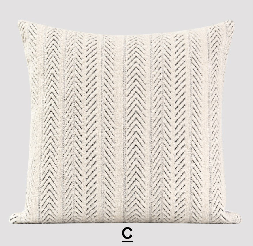 All pillow covers are sewn professionally, over-locked with finished edges to prevent fraying and has invisible zipper enclosures. This provides long lasting, durable covers that will stay straight and beautiful over time, which makes for a clean professional look.
