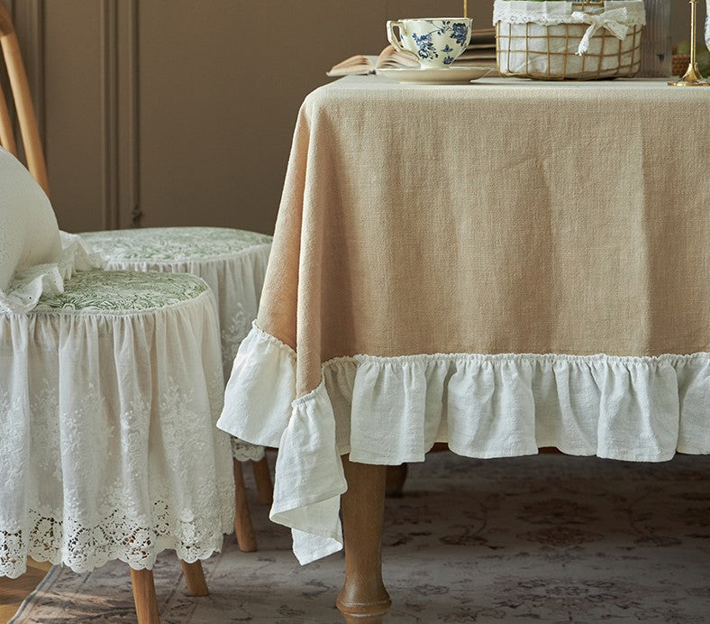 This unique natural flax table cloth is suitable for dining table, tea table, piano cover, bedstand, etc.