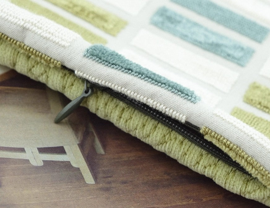 All pillow covers are sewn professionally, over-locked with finished edges to prevent fraying and has invisible zipper enclosures. This provides long lasting, durable covers that will stay straight and beautiful over time, which makes for a clean professional look.