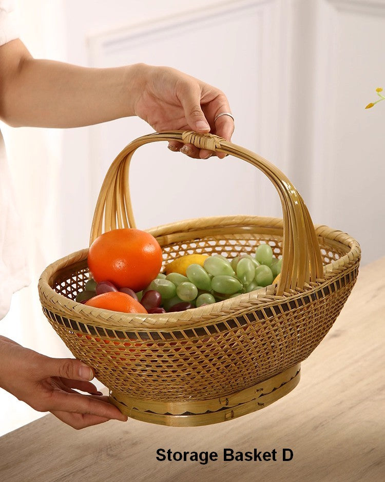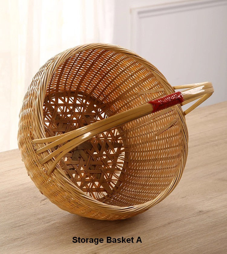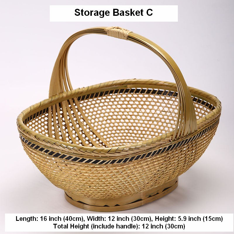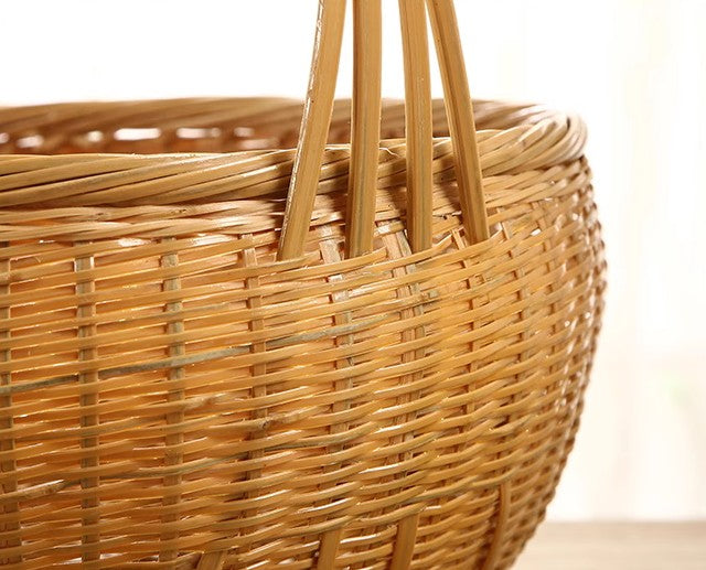 Natural Hand-woven Bamboo Basket, Extra Large Picnic Food Basket with Handle, Lovely Bamboo Baskets for Vegetable, Natural Fruit Basket Kitchen Storage Baskets-ArtWorkCrafts.com