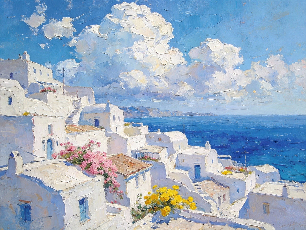 Original Canvas Paintings, Azure Dreams of the Aegean, Small Oil Paintings on Canvas, Palette Knife Artwork, Landscape Oil Paintings, Hand Painted Wall Art-ArtWorkCrafts.com