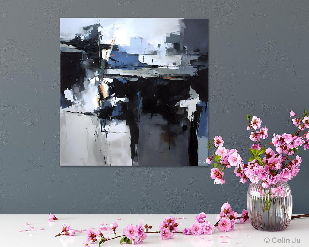 Original Modern Wall Art on Canvas, Black Contemporary Canvas Art, Modern Acrylic Artwork for Sale, Large Abstract Painting for Bedroom
