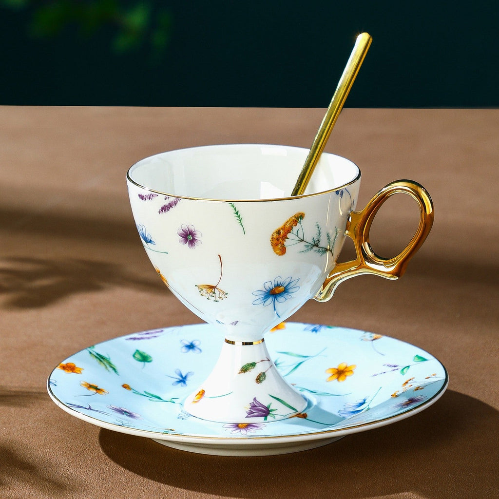 Porcelain Tea Cup and Sucer Set, Flower Ceramic Tea Cup and Saucer, Floral Tea Cup and Saucer Set in Gift Box, Elegant British Ceramic Coffee Cup with Sucer-ArtWorkCrafts.com