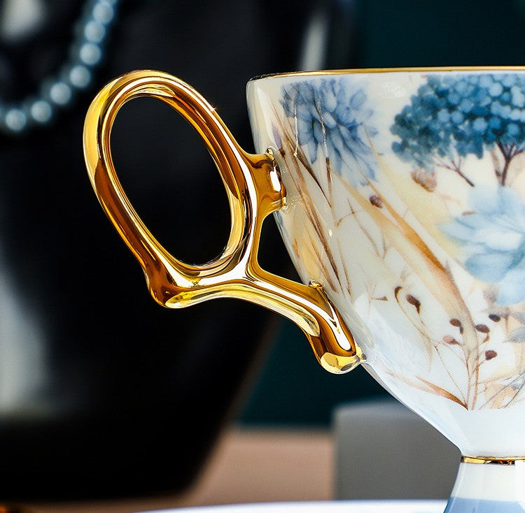 Porcelain Tea Cup Set and Saucer Set, British Tea Cup set, Ceramic Tea Cup and Saucer Set in Gift Box, Elegant Ceramic Coffee Cup with Saucer-ArtWorkCrafts.com