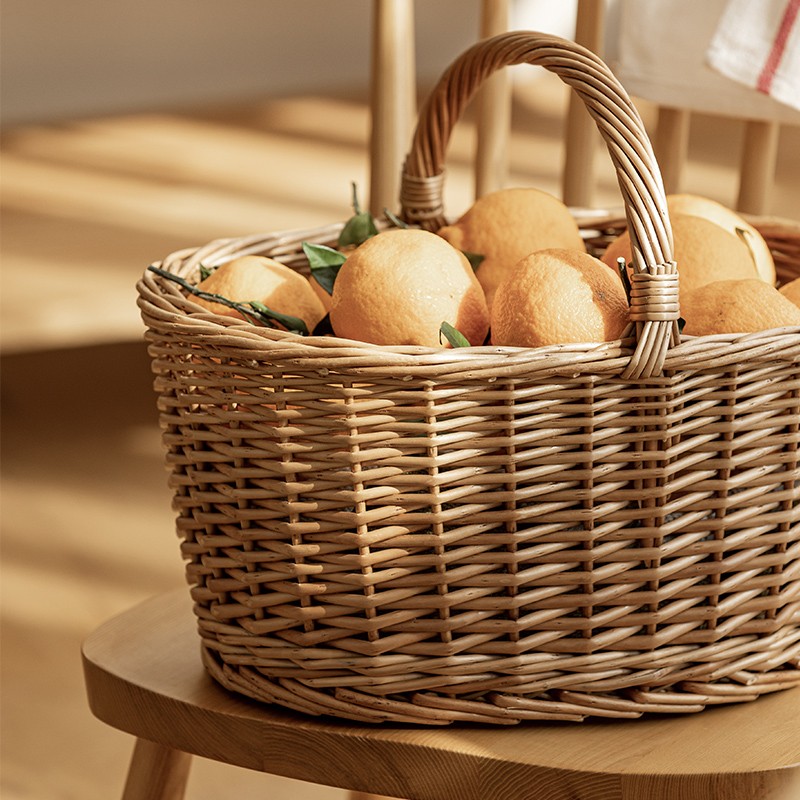 Hand-woven Wicker Storage Basket, Willow Weaving Baskets for Vegetable, Small Picnic Storage Basket with Handle, Natural Fruit Basket, Kitchen Storage Baskets