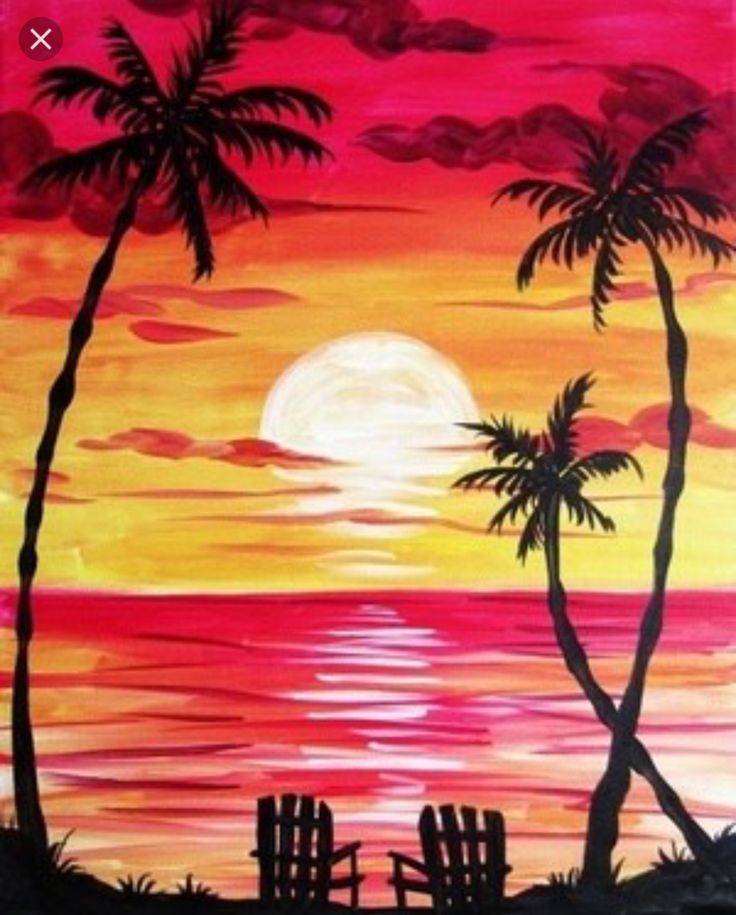 Small Seashore Beach Palm Tree Painting, Small Canvas Art on Canvas, Simple Landscape Artwork, Easy Painting Ideas on Canvas, Simple Acrylic Paintings