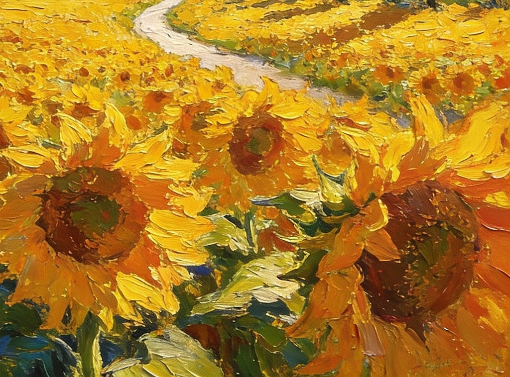 Landscape Oil Paintings, Sunflower Fields in Full Bloom, Provence, Heavy Texture Oil Paintings, On Canvas Small Paintings, Hand Painted Canvas Art, Original Small Paintings-ArtWorkCrafts.com