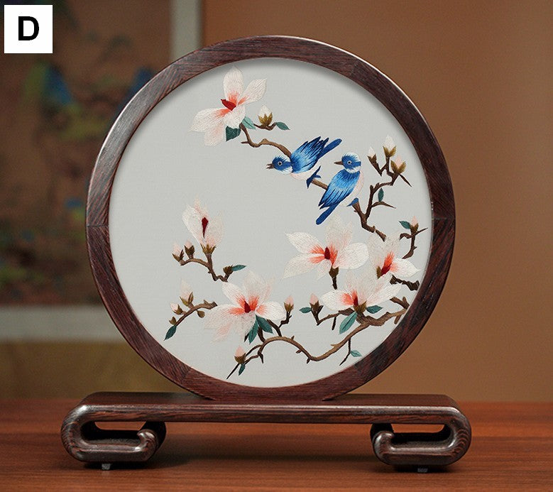 Traditional Chinese Suzhou Silk Embroidered Ornament, Premium Souvenir, Exclusive Business Presents, Creative Birthday Gift, Flower and Birds Embroidery Ornaments