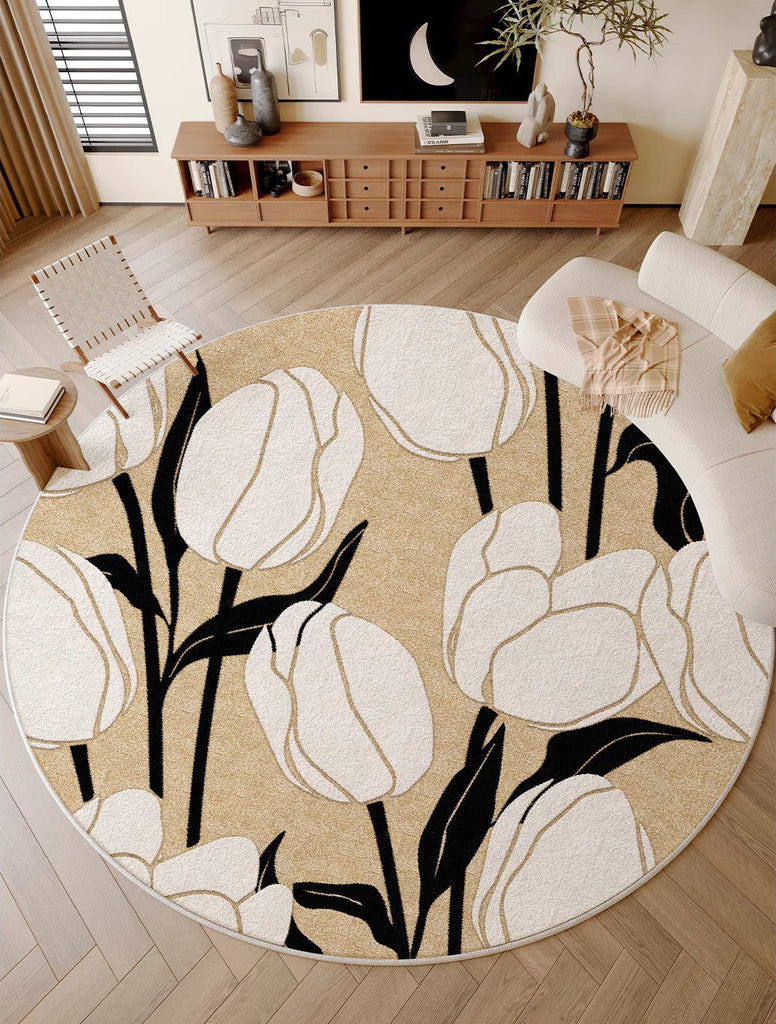 Tulip Circular Modern Rugs under Chairs, Geometric Round Rugs for Dining Room, Bedroom Abstract Modern Area Rugs, Contemporary Modern Rugs for Living Room