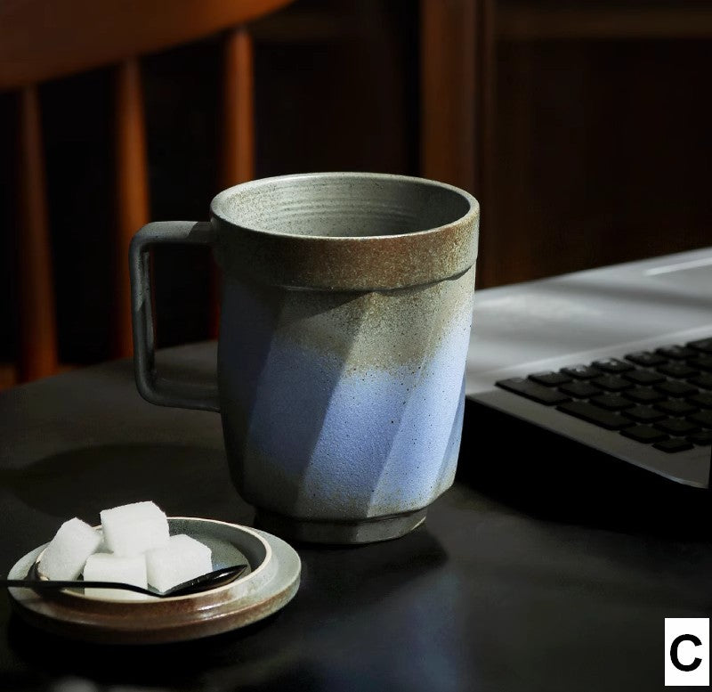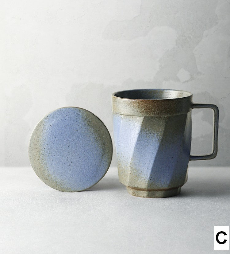Unique Tea Cup, Large Capacity Coffee Mug with Cover, Large Modern Handmade Pottery Coffee Cup, Creative Brown Green Blue Black Ceramic Coffee Mugs